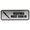 Brushed Metal Office Sign, Visitors Must Sign In, 9 x 3, Silver