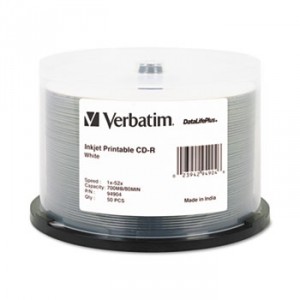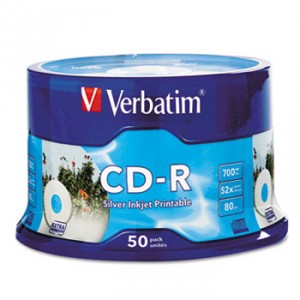 7. Printable CD-R Discs, 700MB/80min, 52x, Spindle, White, 50/Pack